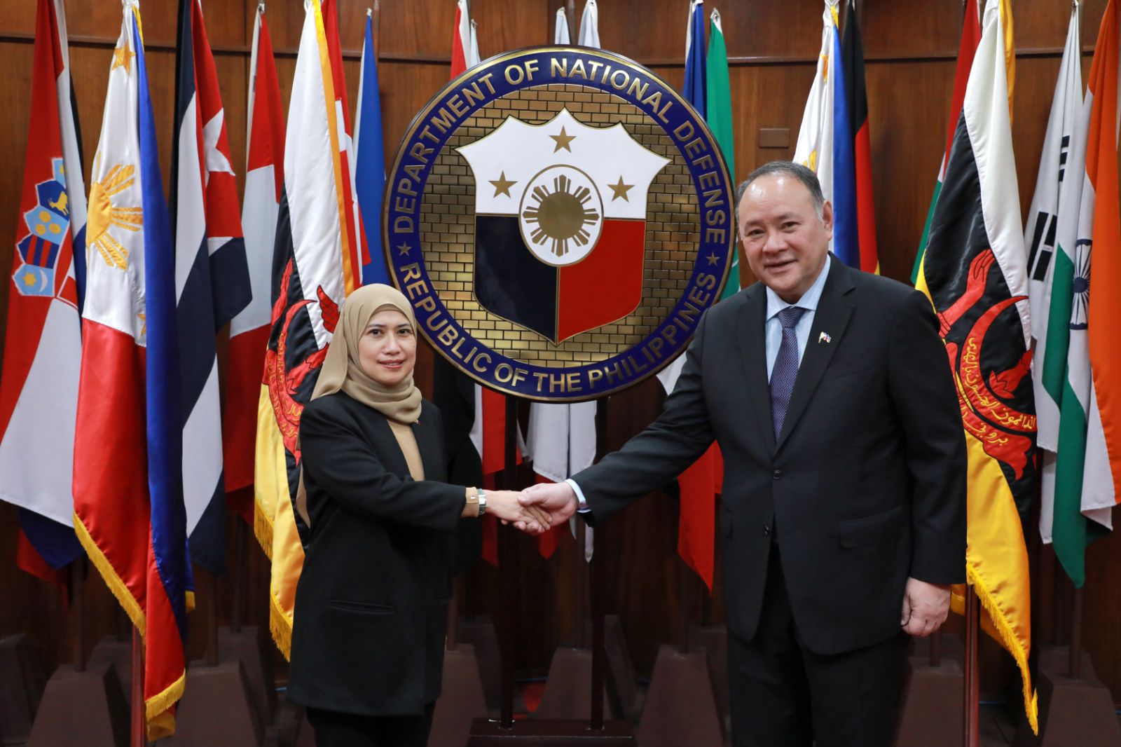 July 11, 2023July 10, 2023 (Quezon City) | Secretary of National Defense (SND) Gilberto C. Teodoro, Jr., received H.E Megawati Manan, Ambassador of Brunei Darussalam to the Philippines, during the Ambassador’s introductory call at the DND.