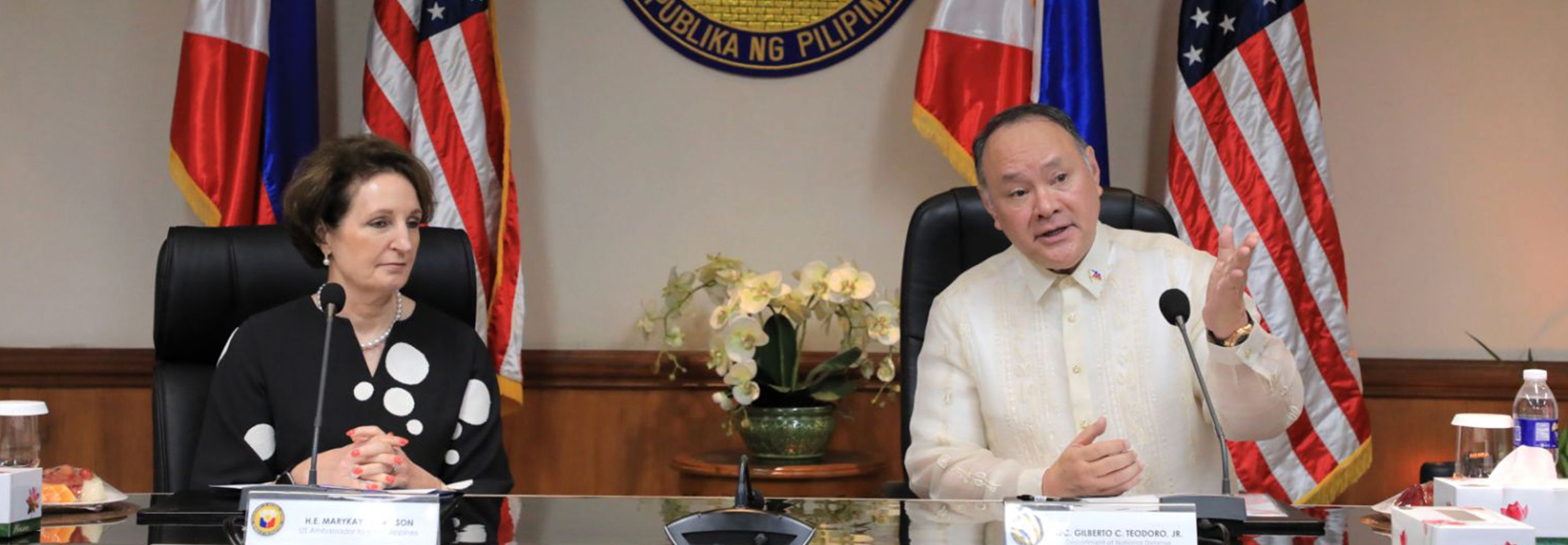 July 13, 202311 July 2023 (Quezon City) – Secretary of National Defense (SND) Gilberto C. Teodoro Jr. and National Security Adviser Eduardo M. Año met a delegation from the US Business Executives for National Security (BENS), led by BENS President and CEO Gen. Joseph L. Votel, U.S. Army (Ret), and accompanied by U.S. Ambassador to the Philippines, H.E. MaryKay L. Carlson, to explore investment opportunities in support of common national security objectives.
